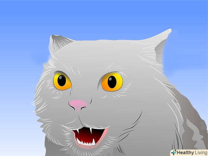 - Якщо кіт/кішка має можливість втекти, то він/вона, швидше за все так і зробить, рухаючись швидко і притискаючись до землі. Якщо тварина відчує себе в пастці, то, швидше за все, спина у кота/кішки стане дибки, і він/вона буде шипіти і фиркати.