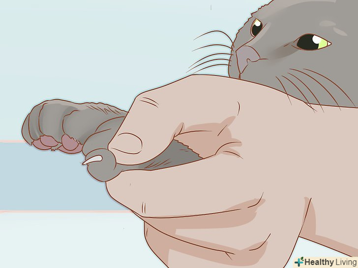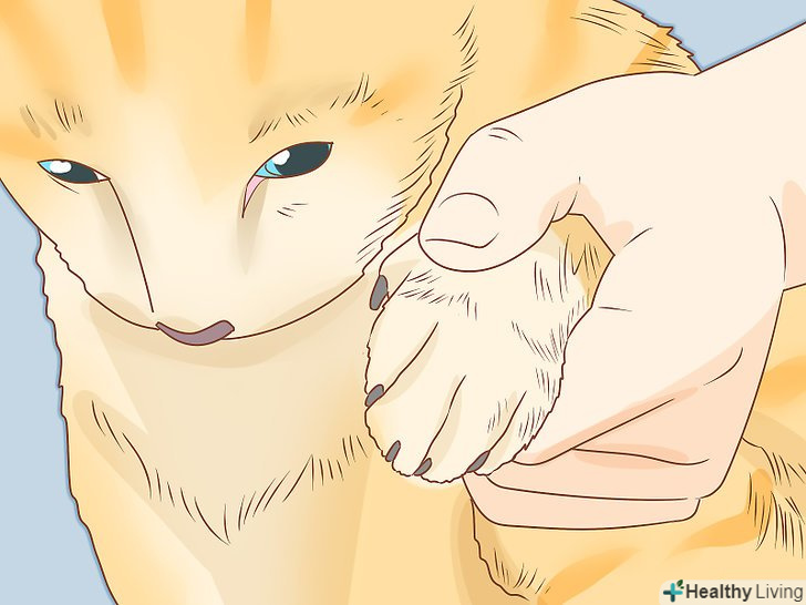 Візьміть лапу в руку. злегка натисніть на подушечки, щоб випустити кігті.- Якщо кішка впирається, дайте їй заспокоїтися.