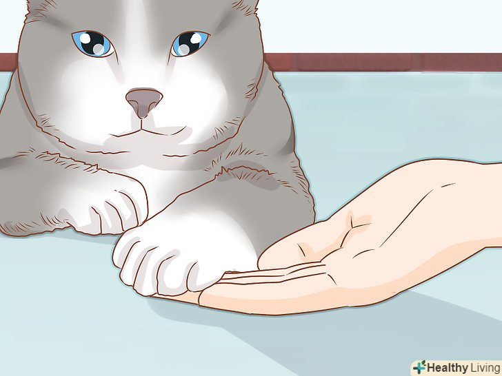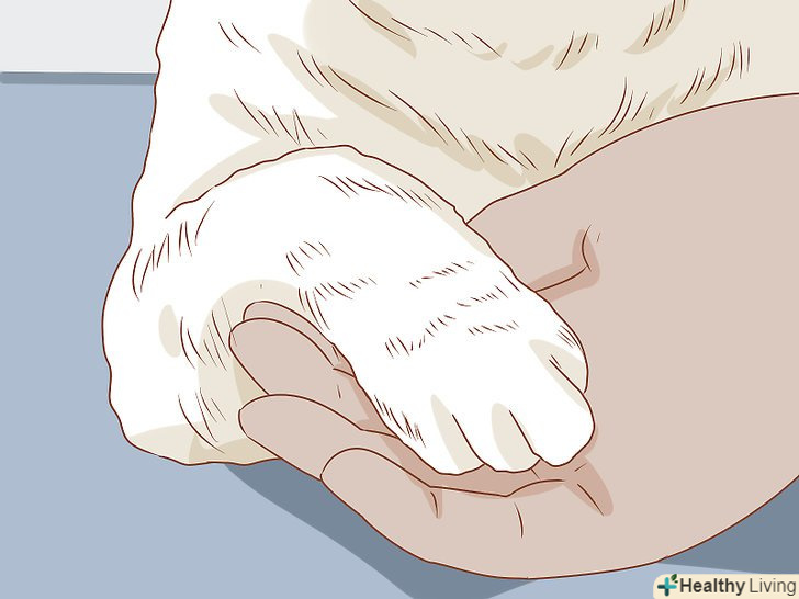 Потримайте кішку за лапи. коли кішка звикне до погладжувань по лапах, почніть акуратно брати лапи в руки.- Покладіть долоню на лапу кішки, потім переверніть руку так, щоб лапа опинився на розкритій долоні.