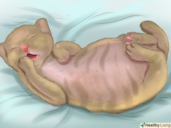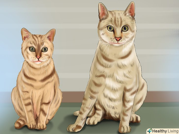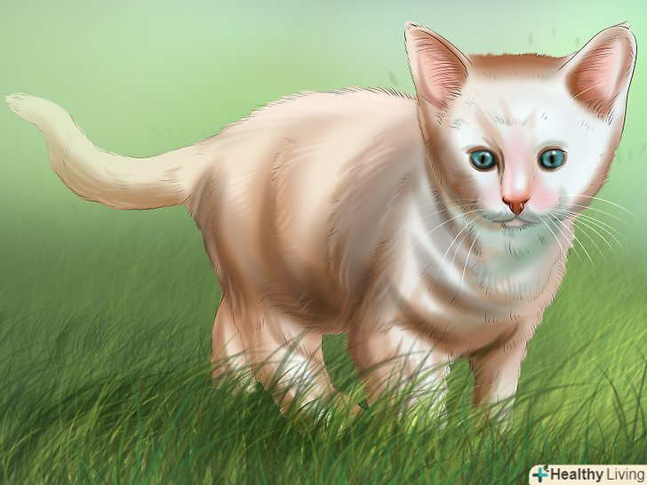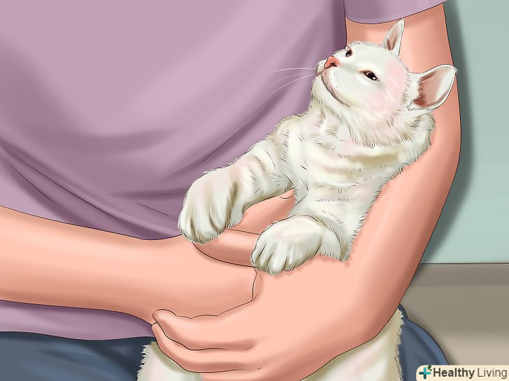 Зверніть увагу на стан здоров'я кішки. очі повинні бути чистими, без виділень і не сльозитися. Ніс також повинен бути чистим від виділень і слизу, кішка не повинна чхати або кашляти. Шерстка повинна бути чистою, досить гладкою і без ковтунів в разі довгошерстих кішок. Запустіть руку проти шерсті, щоб перевірити тварину на наявність бліх (дрібні, коричневі, швидко рухомі по шкірі жучки). [6]- Кошенята з» надутим " животом можуть бути просто поїли, а можуть бути і з глистами. Вам слід також пошукати будь-які ознаки діареї у тварини (як в лотку, так і в області заднього проходу).