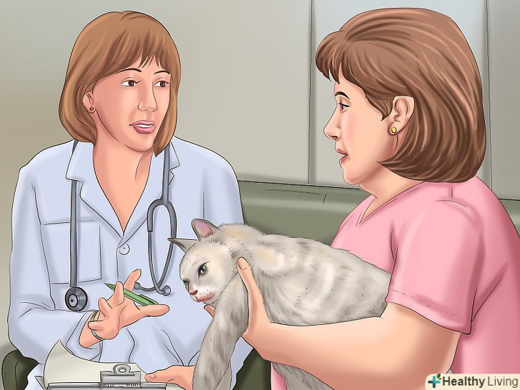 Звозите кішку до ветеринара. тварина потрібно перевірити на котячу лейкемію, якщо це не було зроблено раніше. Вуха треба перевірити на наявність вушних кліщів – це захворювання часто буває у кошенят. Шкіру також потрібно перевірити на бліх та інших паразитів. Необхідна перевірка на паразитарну інфестацію (глистів). [8]- Навіть якщо тест показав відсутність паразитів, кішці, ймовірно, треба провести дегельмінтизацію як превентивний захід.