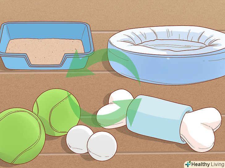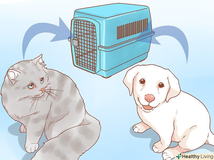 Облаштуйте місце для закритого утримання кішки або собаки. і цуценяті, і кішці буде необхідно надати певне місце для поступової адаптації один до одного. Не слід відразу ж влаштовувати вихованцям зустріч без будь - якої підготовки. Забезпечте їх роздільним доглядом і увагою в першу пару днів. [1]- Зазвичай слід обмежувати територію перебування нового вихованця, тобто рекомендується тримати цуценя в окремій кімнаті до тих пір, поки не настане час дозволити йому бігати по всьому будинку.