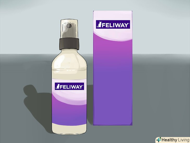 Обробіть внутрішній простір клітини-перенесення спреєм з котячими феромонами "Фелівей" за 20 хвилин до від'їзду. у засобі присутні синтетичні речовини, що імітують котячі феромони, які виробляють тварини в стані комфорту і спокою на своїй особистій території. Вони допоможуть заспокоїти кішку на період поїздки. [4]- Обов'язково заздалегідь перевірте реакцію кішки на" Фелівей", перш ніж обробляти їм клітку-переноску. Невелика частка кішок сприймає спрей як мітки чужого кота і може проявляти негативну або навіть агресивну реакцію на нього.