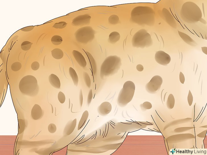 Розпізнайте плямисту шерсть. найбільш відмінною фізичною рисою бенгальських кішок є їх красива плямиста шерсть. Ці кішки успадкували ці плями від своїх предків — леопардів. У всіх бенгальських кішок без винятку плямисте забарвлення. [1]- Шерсть бенгальських кішок, як правило, має певний блиск або відлив, який добре помітний під прямими сонячними променями. Розвідники часто називають це явище "ефектом блискіток".