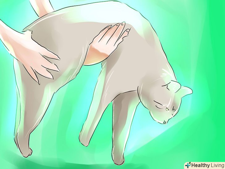 Підніміть кішку. візьміть її під живіт і під зад. Переміщайте її впевнено і спокійно, швидко, але без різких рухів. Завжди підтримуйте її під задньою частиною. Слідкуйте за її кігтями і зубами, і тримайте її подалі від себе, якщо вона починає злитися.