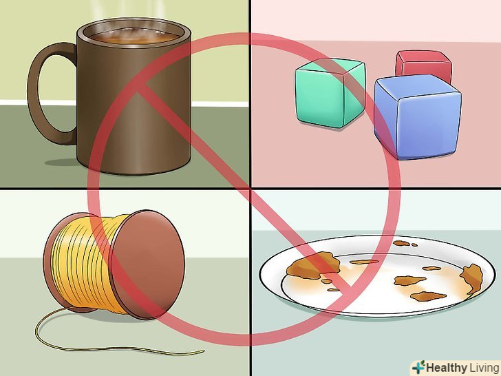 Створіть для кошенят безпечне середовище. захистіть їх від глибоких ємностей з водою, приберіть нитки, дроти, стрічки і дрібні іграшки. Так кошенята не задихнуться і не потонуть. Слідкуйте за тим, куди ставите гарячі напої, тому що під час ігор кошенята можуть їх перекинути і отримати опік. Не давайте кошенятам їжу зі столу-вона шкідлива для їх шлунків. [7]- Слідкуйте за тим, як інші тварини в будинку поводяться з кошенятами, особливо собаки. Заблокуйте вузькі місця, куди кошенята можуть залізти і застрягти.