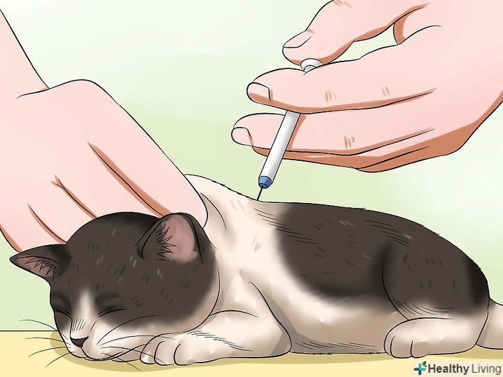 Перевірте, чи немає у кішки і кошенят бліх. огляньте шерсть і шкіру тварин. Розчешіть кішку і кошенят і зніміть шерсть зі щітки білим паперовим рушником. Там можуть бути червоні точки (засохла кров) і виділення бліх. Якщо у кішки або кошенят є блохи, попросіть ветеринара порекомендувати вам засіб від бліх, яке підійшло б для кошенят. Обробіть шкіру мами-кішки, дочекайтеся, поки засіб повністю висохне, і поверніть її кошенятам.- Якщо ветеринар встановить, що кошенята заразилися глистами від мами, кошенятам потрібно буде давати рідкі ліки шприцом (наприклад, фенбендазол). [9] його можна давати кошенятам не молодше 3 тижнів. Повторюйте кожні 2-3 тижні.