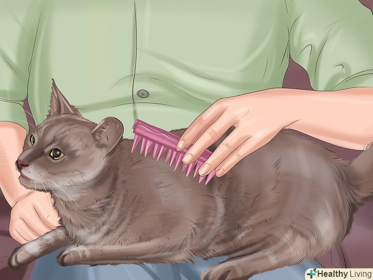 Подбайте про належне грумінгу. без сумніву, кішки досить професійно справляються з підтриманням чистоти і краси свого зовнішнього вигляду. Проте невелика допомога з Вашого боку все ж не буде зайвою, а часом може навіть бути сприйнята з вдячністю. [14]- Більшість кішок дозволяє себе вичісувати, головне — робити це акуратно і застосовувати належні інструменти. Для довгошерстих кішок можна спробувати використовувати плоску гребінець-гребінь, а для короткошерстих — пуходерку. Вичісуйте шерсть вихованця в міру необхідності, щоб звести до мінімуму утворення ковтунів. Знайте, що також існують спеціалізовані щітки та інструменти для догляду за шерстю в більш чутливих зонах, наприклад, навколо очей.