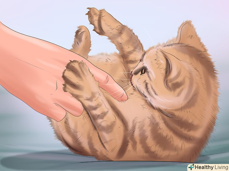 Звертайте увагу на сигнали довіри. крім демонстрації довіри (коли вихованець прилаштовується поруч з вами), кіт може показувати прихильність до вас демонстрацією вразливих місць свого тіла, перевертаючись на спину, витягуючись і оголюючи свій живіт. [5]- Проте знайте, що багато котів можуть показувати живіт, але при цьому не бажати, щоб господар до нього торкався. Слідкуйте за появою сигналів зацікавленості в ваших ласках або просто спробуйте Ласкаво погладити живіт і з'ясувати, чи зможете ви продовжувати далі без ризику отримати подряпини і укуси.