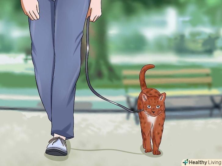- Виводьте кота на повідку і гуляйте по вулиці. [14] закріпіть поводок до нашийника або шлеї і дочекайтеся, поки кіт звикне до нового аксесуару. Почастуйте кота ласощами або вологим кормом, щоб відвернути і спокійно відрегулювати поводок. Потім виходьте на вулицю і гуляйте разом з вихованцем. Прогулянки корисні для котів, адже вони дозволяють досліджувати зовнішній світ і стають незвичайною розминкою для мозку.