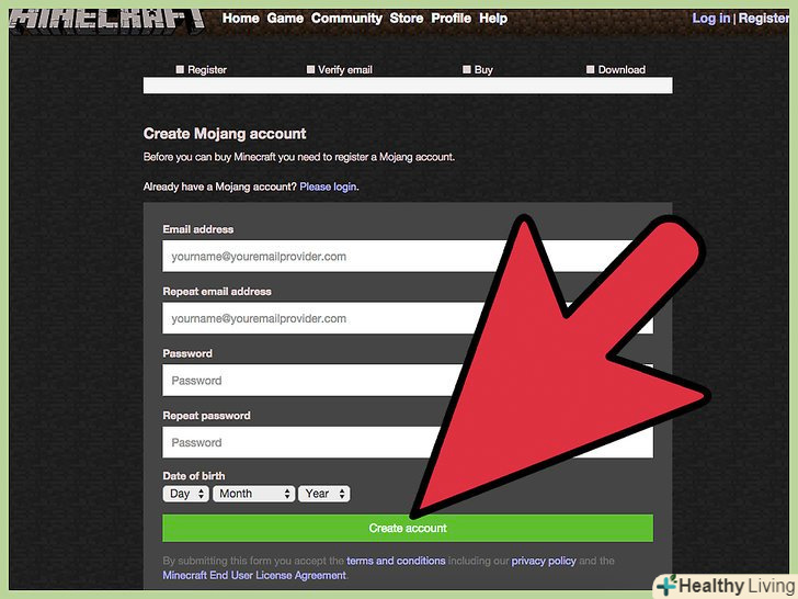 Створіть обліковий запис у Minecraft.цей крок обов'язковий як при покупці офіційної версії Minecraft, так і при використанні безкоштовного сервісу Mineshafter. Вам знадобиться обліковий запис Minecraft для свого персонажа в Mineshafter. Створити обліковий запис можна на офіційному сайті Minecraft, це безкоштовно. Для цього натисніть на кнопку»Реєстрація".[2]