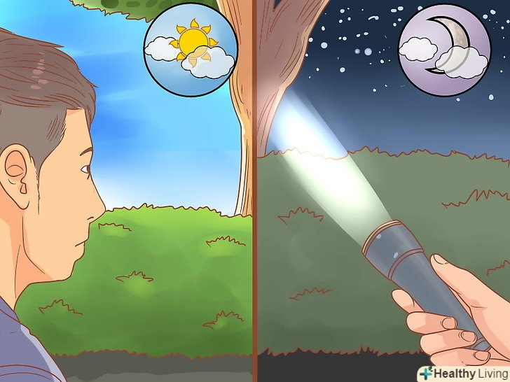 - Не забудьте взяти ліхтар. Світло ліхтаря відбивається в котячих очах, що дуже до речі в темряві. Направляйте ліхтар на всі боки, в тому числі під машини, і шукайте специфічне відображення. [5]