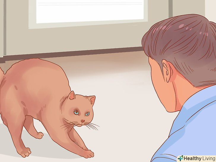 Підходьте до кота обережно. Будьте обережні, коли знайдете кота. Ваша улюблениця може бути налякана або поранена. [7] покличте друзів, щоб не дати кішці втекти, і спробуйте заговорити з нею. Зверніть увагу на потенційні шляхи втечі і спробуйте передбачити її руху. Підходьте не поспішаючи і, якщо можливо, тримайте в руках їжу. Дайте кішці час нюхати вашу руку і довіритися вам. Обережно візьміть тварину на руки.- Якщо у вашої кішки є видима рана, то будьте вкрай обережні, щоб не погіршити ситуацію і не заподіяти зайвого болю.