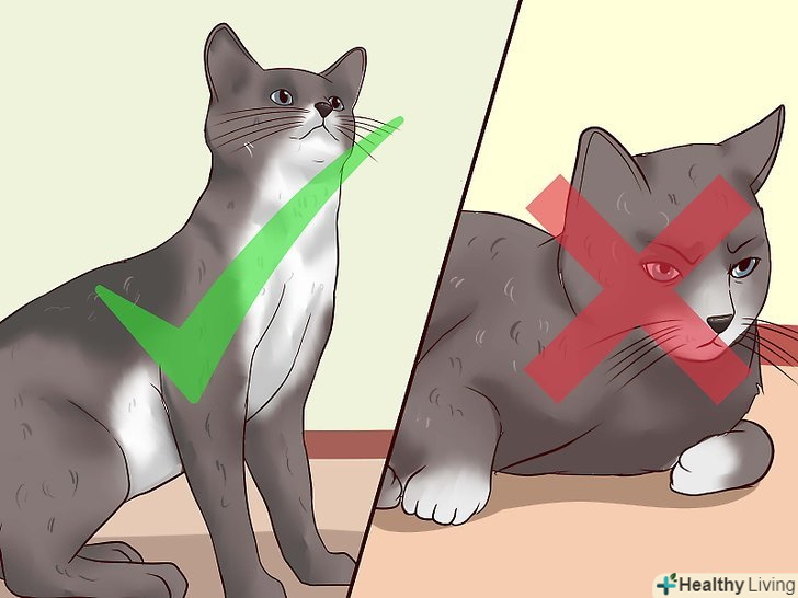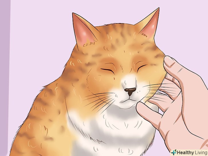 Приступайте до вичісування, коли кішка буде в спокійному стані. не вичісуйте вихованця, якщо він нервує. [4] обережно погладьте кішку і поговоріть з нею спокійним голосом. Завдяки цьому кішка спокійніше перенесе вичісування.- Якщо кішка не привчена до вичісування, швидше за все, вона буде чинити опір. Постарайтеся показати їй, що це приємно, і не вичісуйте її занадто довго в перший раз, щоб їй було легше перенести процедуру.