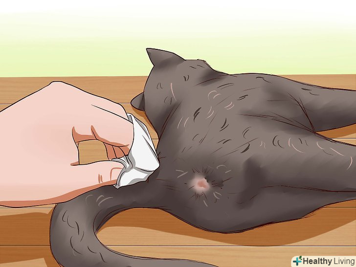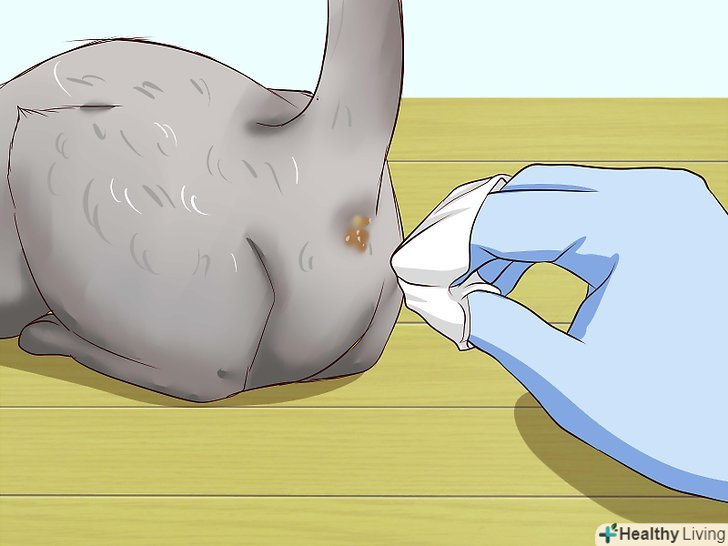 Видаляйте сліди екскрементів з вовни, як тільки помітите їх. якщо кішка не може або не хоче доглядати за собою самостійно, вам потрібно буде стежити за тим, щоб навколо хвоста не збиралися сліди випорожнень. Це особливо важливо, якщо у кішки довга шерсть або буває діарея. Якщо бруд не прибрати вчасно, на цьому місці утворюється Ковтун, який з часом почне викликати шкірні проблеми і заважати кішці ходити в туалет. [18]