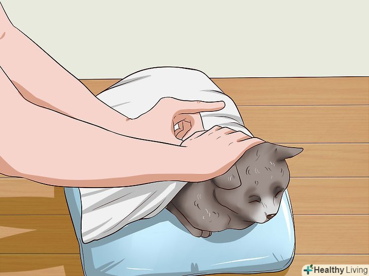 Висушіть кішку. коли закінчите, попросіть помічника обережно дістати кішку з ванни і поставити на рушник. Оберніть кішку рушником, щоб підсушити шерсть і зігріти тварину. Потім випустіть кішку в тепле приміщення, де вона зможе обсохнути.