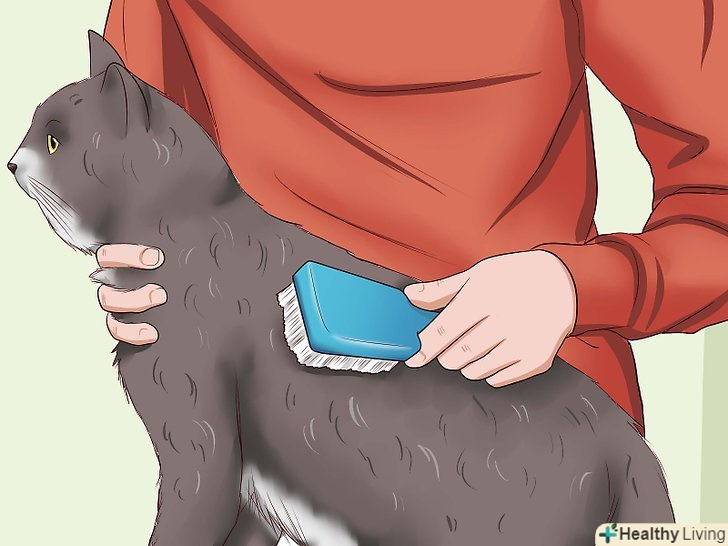 Почніть вичісувати кішку кожен день. якщо кішка вже не може доглядати за собою як раніше, почніть допомагати їй кожен день. Вичісуйте кішку від голови до хвоста, щоб прибрати випадає шерсть, бруд і сміття. Вичісування також покращує кровообіг і секрецію сальних залоз. Завдяки цьому шерсть знову почне блищати і не буде збиватися в ковтуни, що особливо актуально для довгошерстих кішок. [3]