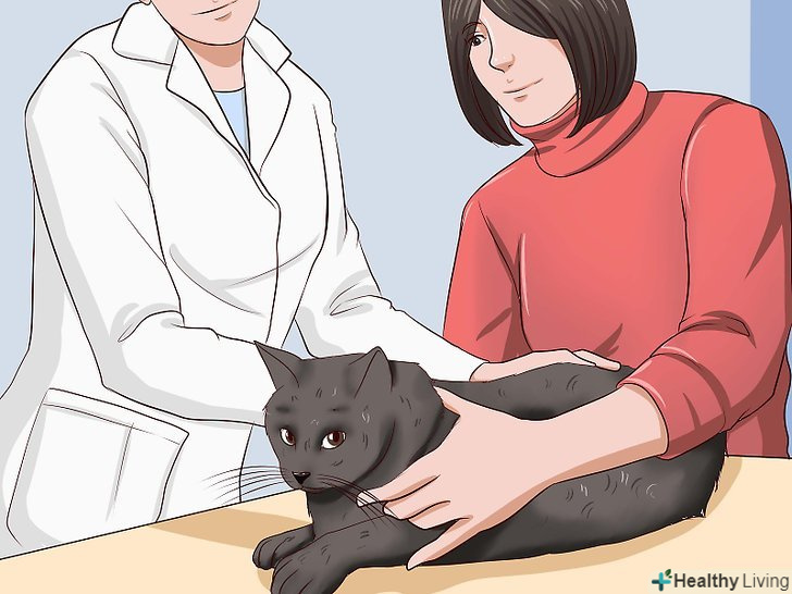 Відвезіть кішку до ветеринара. якщо кішці складно доглядати за собою, можливо, у неї проблема зі здоров'ям, через яку їй боляче вмиватися. У цьому випадку важливо встановити причину дискомфорту. Завдяки лікуванню кішка, швидше за все, почне вмиватися самостійно. Якщо у кішки є ранки в пащі, ймовірно, їй необхідна допомога стоматолога, а якщо кішка літня і страждає артритом, можливо, їй допоможуть болезаспокійливі препарати. [2]- Якщо шерсть кішки сильно свалялася, відвезіть її до грумера, щоб той зрізав ковтуни. Нерідко видалення ковтунів викликає у тварини стрес і біль, тому цю процедуру можуть проводити під наркозом.
