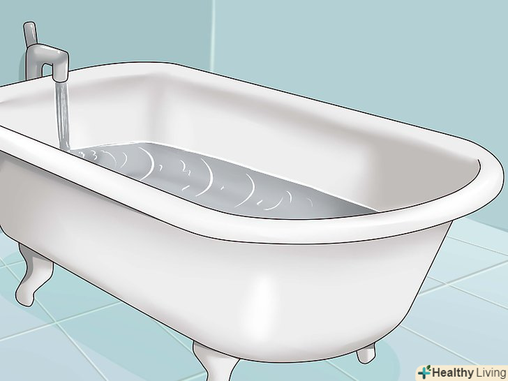 Підготуйте раковину або ванну. можна викупати кішку в раковині, якщо вона досить велика. Покладіть на дно гумовий килимок, щоб лапи кішки не ковзали. Наповніть ванну теплою водою на кілька сантиметрів. [26]