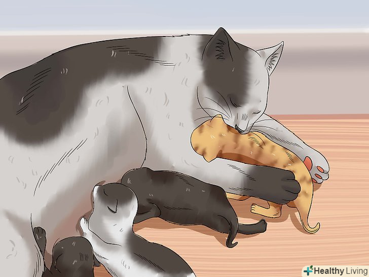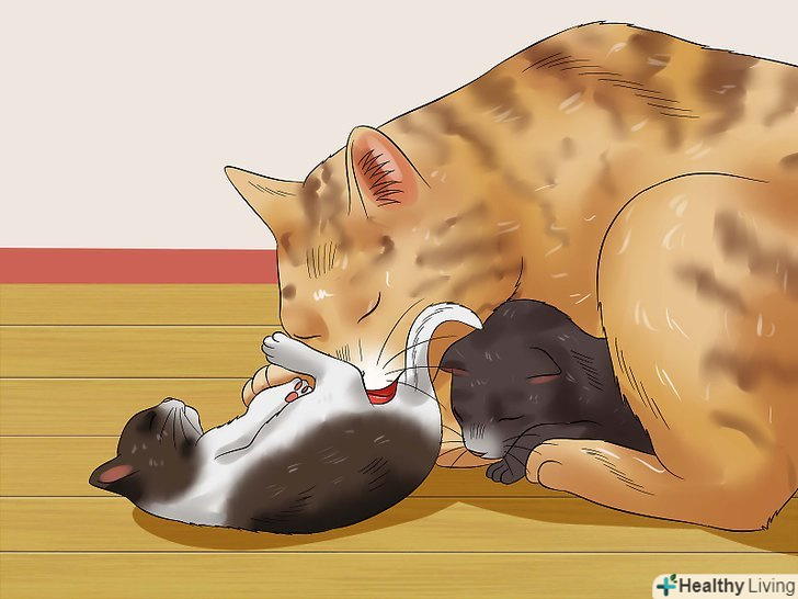 Дозвольте кішці, якщо вона поруч і здорова, самій піклуватися про кошенят. якщо кішка поруч, то вона сама зможе допомогти кошенятам ходити в туалет. Протягом перших кількох тижнів життя кошенят, щоб допомогти їм з сечовипусканням і дефекацією, кішка вилизує їх статеві органи. Не заважайте кішці допомагати кошенятам в сечовипусканні і дефекації. [11]