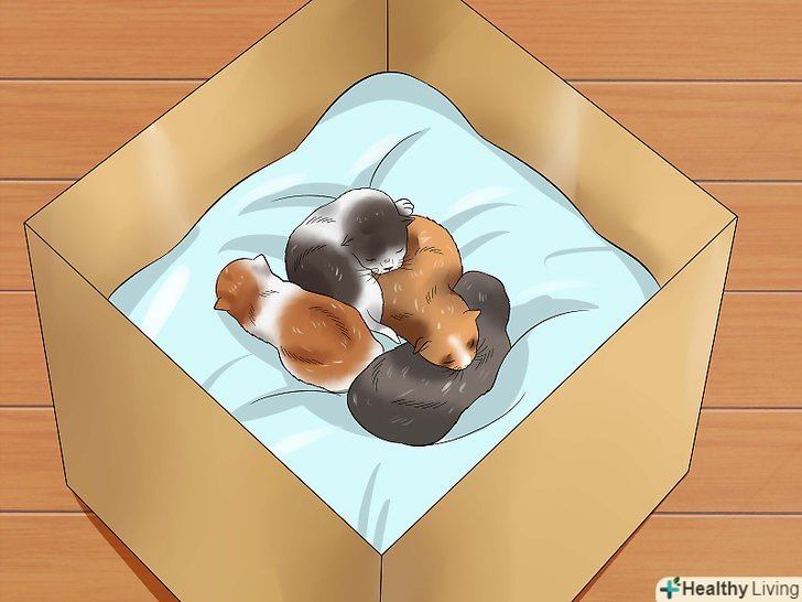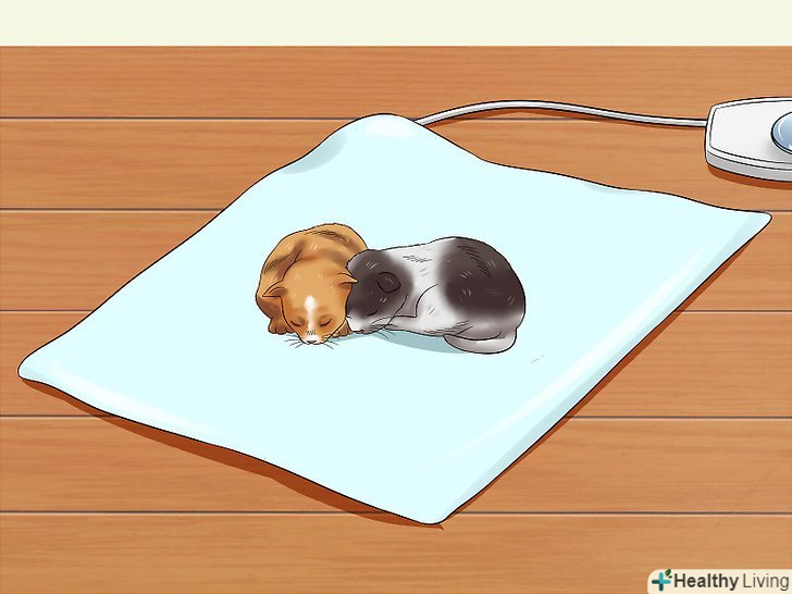 Тримайте кошенят в теплі. якщо кішки немає поруч, для підтримки тепла у кошенят Ви можете використовувати грілку або пляшку з гарячою водою, загорнутої в рушник. Перевірте, що температура гарячої поверхні не надто висока, інакше кошенята можуть отримати опіки. Періодично перевіряйте грілку, щоб переконатися, що кошенятам комфортно. [10]