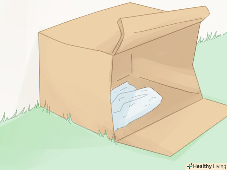 Якщо кішка потенційно домашня, просто загубилася, спробуйте організувати для неї укриття, дати води і м'яку підстилку. так ви зможете утримати тварину біля себе до тих пір, поки не зможете йому допомогти. Інакше кішка може піти в пошуках того ж самого в інше місце. Не залишайте їжу без нагляду, якщо не впевнені, що це домашня кішка – ви можете залучити цим інших бродячих тварин або чужих домашніх вихованців (яких, до того ж, можливо, тримають на спеціальній дієті).- Намагайтеся годувати кішку на вулиці, але в такому місці, куди є доступ тільки у неї – наприклад, на маленькому ганку, куди не вдадуться бродячі тварини. Виставляйте їжу на вулицю пізно ввечері, а вранці перевіряйте, з'їдена вона. При температурі нижче нуля можна полити шматочки їжі маслом від рибної консерви, щоб їжа не замерзла.