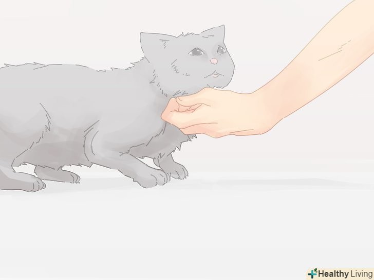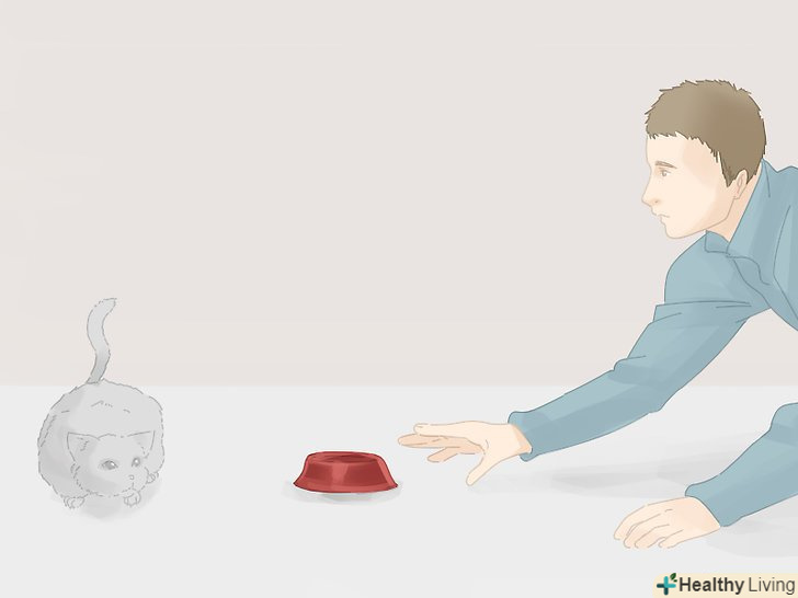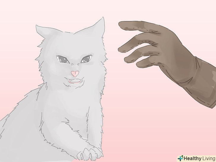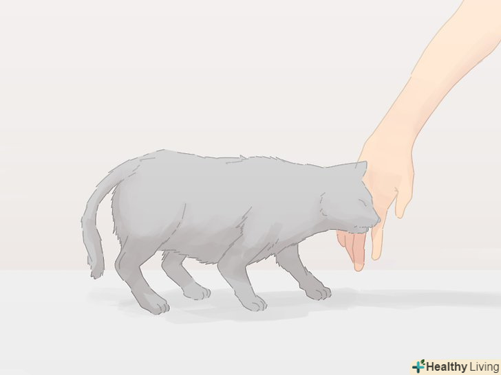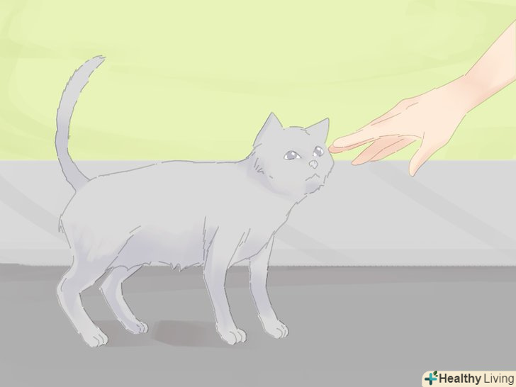 - Почніть з того, що простягніть коту руку з яким-небудь особливо апетитним ласощами. Покладіть ласощі якомога ближче до нього, незважаючи на притиснуті вуха, бурчання та інші прояви готовності до загрози. Не кидайте ласощі і не підставляйте пальці для укусу. Повторіть ще раз, присунувши руку до кота настільки близько, наскільки він дозволить. Зрештою, Ви зможете протягнути руку настільки, що кіт почує запах їжі. Дочекайтеся цього моменту і приберіть руку.