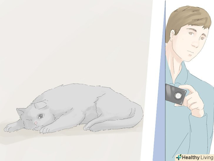 Дайте коту кілька годин на те, щоб заспокоїтися. коли він трохи заспокоїться, тихенько увійдіть в кімнату і принесіть з собою їжу і фотоапарат. Спробуйте зробити хороший знімок, щоб негайно почати пошук господаря.