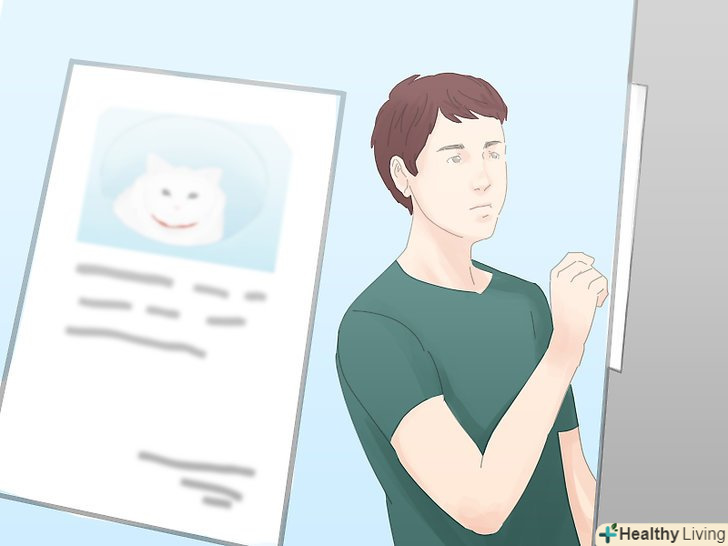 Повісьте оголошення на під'їздах, зупинках і магазинах. найкраще великими літерами на пів-листа написати і надрукувати фото кота. Це приверне увагу тих, хто втратив свого домашнього вихованця.- Свої контактні дані можна надрукувати дуже дрібним шрифтом, оскільки той, кому вони потрібно, вже точно зупиниться і уважно прочитає це оголошення.