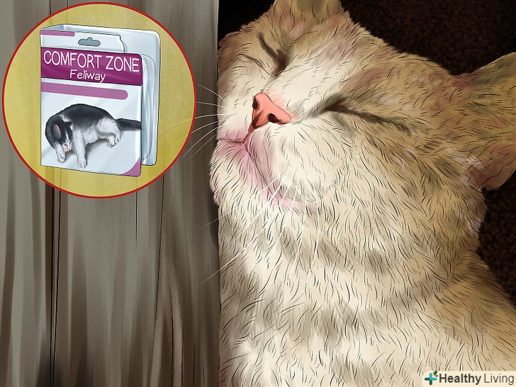 Спробуйте синтетичні котячі гормони. коли кішка відчуває себе комфортно і безпечно, вона починає тертися мордочкою об різні предмети і меблі, залишаючи на них особливі феромони. Продукт "Фелівей" (Feliway) імітує ці феромони — це допомагає переконати кішку в тому, що вона в безпеці. [5]