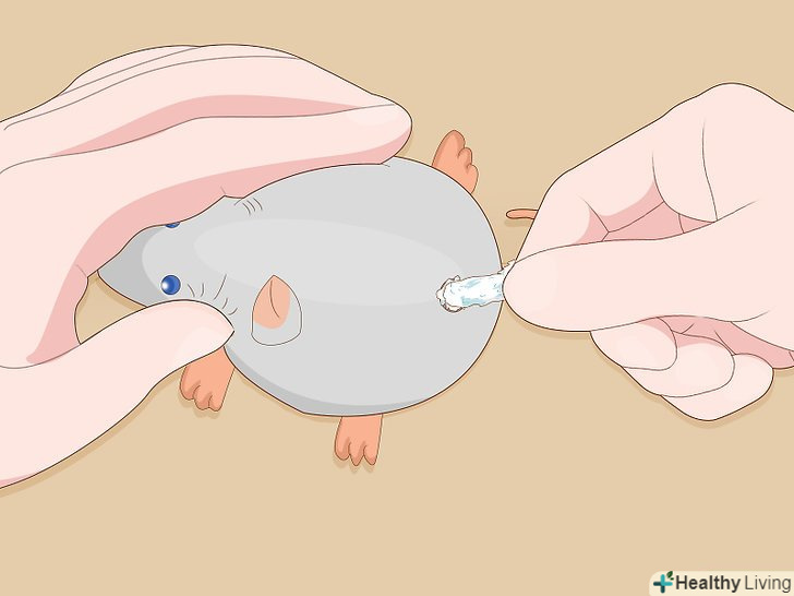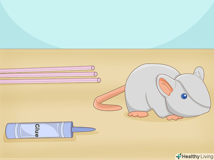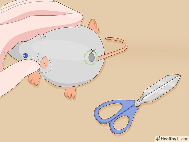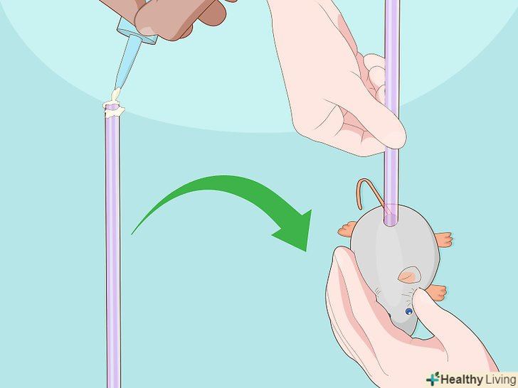 Нанесіть трохи клею на кінець палички. вставте паличку в набивну іграшку і приклейте в такому положенні.- Для даного кроку не рекомендуємо використовувати скотч, так як це менш надійно, до того ж кішка може вдавитися скотчем з набиванням. З цієї ж причини рекомендуємо видалити у іграшки очі, якщо вони являють собою пластикові детальки, прикріплені до поверхні тканини. Для кішки іграшка без очей не стане менш схожою на справжню мишку, і, крім того, кішка не буде з самого початку намагатися відгризти і проковтнути ці деталі, якщо ви завбачливо їх видаліть. [4]
