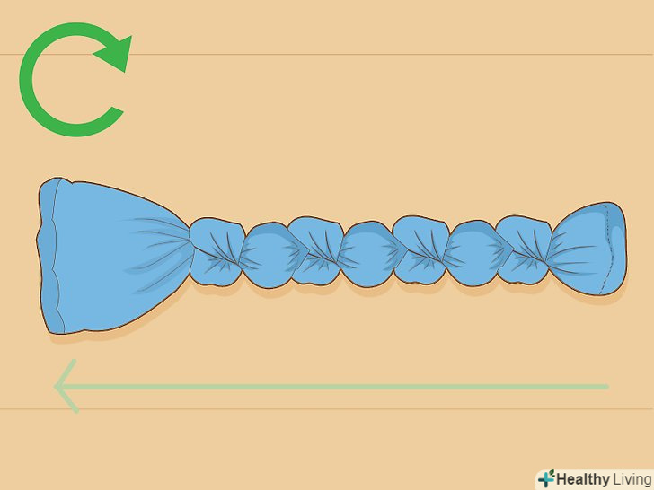 Звільніть котячу м'яту з руки всередині носка. потім перекрутіть носок безпосередньо над грудочкою трави в ньому. Перекрутка не повинна бути ідеально щільною, вона лише повинна бути достатньою для того, щоб можна було обтягнути котячу м'яту декількома шарами матеріалу носка.