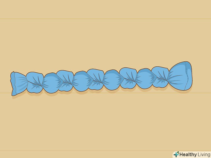 Перекрутіть верхню частину носка, щоб сформувати хвіст. ви можете пришити «хвіст», але якщо ви набивали іграшку котячою м'ятою, ймовірно, вам буде потрібно періодично оновлювати її вміст. Можливо, в такому випадку буде зручніше просто перев'язати носок смужкою трикотажної тканини або стрічкою.