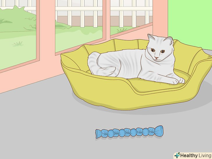 - Ходіть по дому і тягайте за собою іграшку. Це буде корисним, якщо ваша кішка хоче відправитися на вулицю, а вам необхідно потримати її вдома. Також це непоганий спосіб спалити зайву енергію кішки і втомити її.