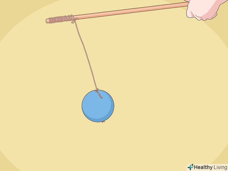 Знайдіть довгу паличку. чим довше вона буде, тим краще: необхідно дозволити кішці кидатися на іграшку і дряпати її, але робити це так, щоб ваші руки при цьому були в безпеці.- Не тикайте в кішку палицею. це може привести до появи у вихованця серйозних травм. Тому розумно буде прикріпити на кінці палички що-небудь м'яке і округле на зразок ватного кульки або м'ячика для гри в пінг-понг.