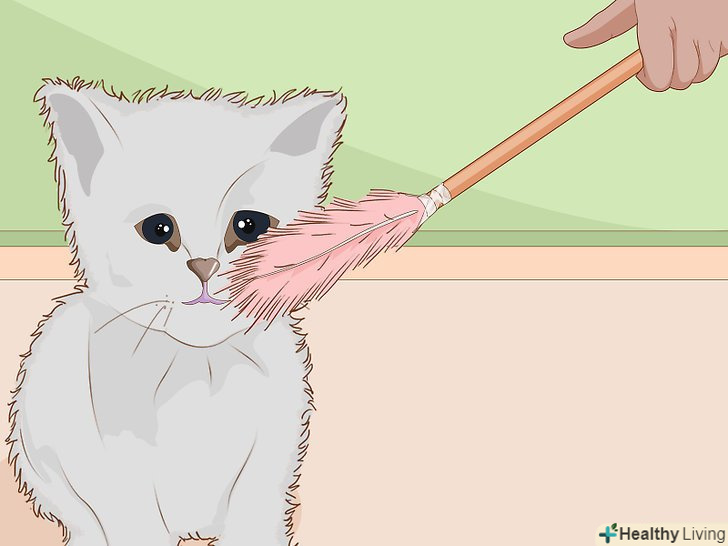 Поворушіть іграшкою. можна водити паличку з пір'ям по підлозі, трясти нею в повітрі або просто спостерігати за тим, чи не проявить кішка самостійне бажання пограти з іграшкою.