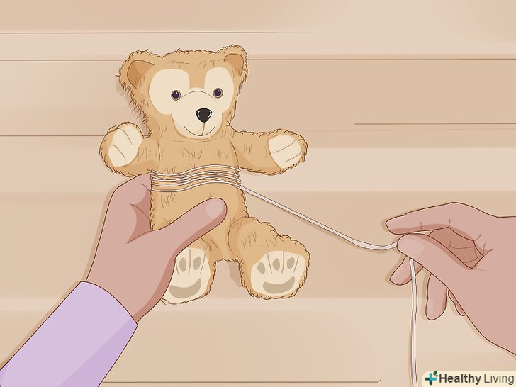 Прив'яжіть іграшку до мотузки або ременя. протягніть прив'язь через отвір або просто обв'яжіть навколо іграшки.- Також можна використовувати стрічку.