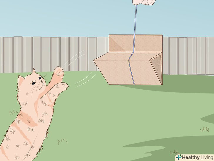 Візьміться за вільний кінець мотузочки і помахайте картонним маятником неподалік від своєї кішки. мета полягає в тому, щоб іграшка в ваших руках жваво і досить маневренно рухалася, максимально можливо нагадуючи живу істоту. Так вашому вихованцеві буде здаватися, що він ловить здобич. [2]