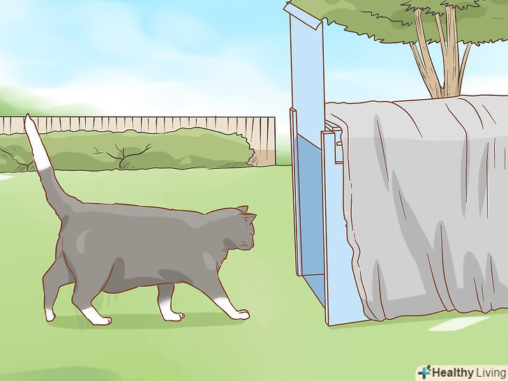 Усуньте або заблокуйте можливі укриття для кішок, щоб вони не селилися у вас у дворі. для захисту від погодних умов кішки підшукують собі теплі, сухі укриття. Якщо вони будуть не в змозі знайти відповідні укриття, то підуть куди-небудь ще. Тому зашийте будь-які щілини під ганком або верандою вашого будинку і простежте за тим, щоб двері в сарай щільно закривалася. Чи не складуйте у дворі пиломатеріали і обов'язково підстригайте густі кущі, щоб кішки не могли знайти собі притулок під ними. [2]- Якщо ви помітили, що кішки збираються в конкретному місці вашого двору, з'ясуйте, що саме служить для них укриттям. Потім просто заблокуйте доступ кішок до цього місця.