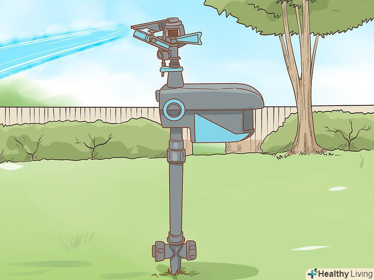 Щоб відлякати кішок, встановіть в саду систему розбризкувачів, що спрацьовує від датчиків руху. Неприязнь котів до води добре відома, тому вони будуть триматися подалі від водяних струменів і вашої території. [4] Включайте систему розбризкувачів на ніч, щоб вона спрацьовувала тоді, коли тварина наблизиться до розбризкувачів на відстань близько 1,5 м, щоб від води не могли постраждати випадкові перехожі.- В якості додаткового бонусу, ваші квіткові клумби і газон завжди будуть добре политі.