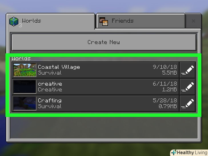 Завантажте гру.виберіть світ, в якому хочете знайти село.- Якщо гра знаходиться в творчому режимі, долати відстані можна набагато швидше, ніж в режимі виживання.