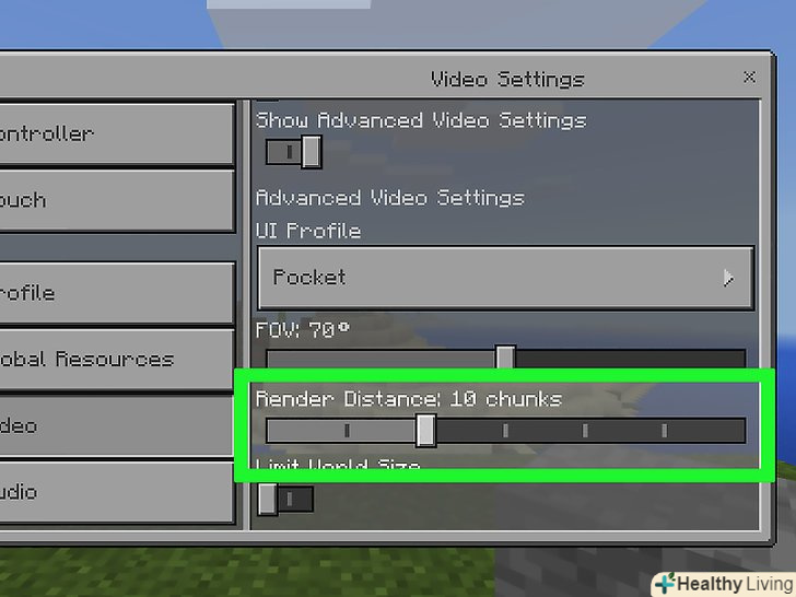 Збільште дальність промальовування.так ви будете далі бачити. Коли гра запуститься, зробіть наступне:- Натисніть кнопку паузи у верхній частині екрана.