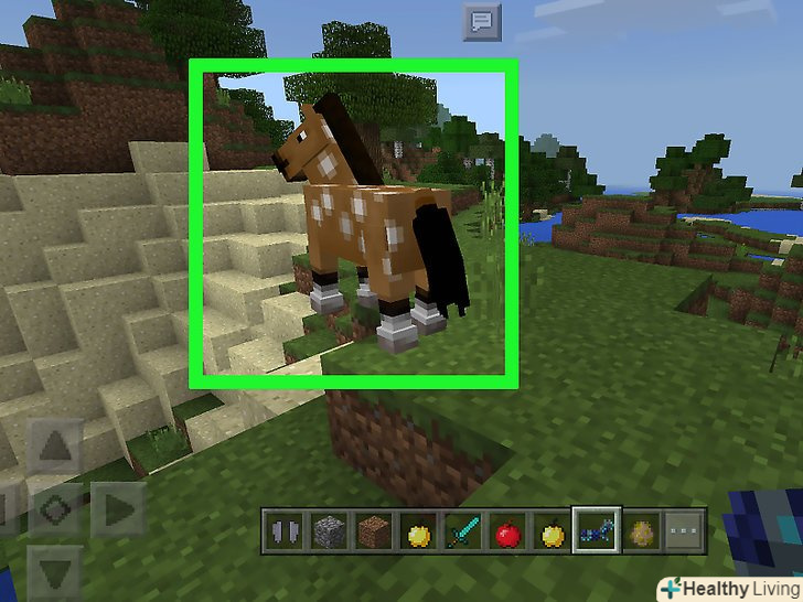 Осідлайте тварину.якщо у вас є сідло, використовуйте його, щоб сісти на коня і прискорити пошуки. Знайдіть коня, кілька разів сядьте на неї (кінь скинути вас), а потім підійдіть до прирученої коні і надіньте на неї сідло.[2]- Свиню теж можна осідлати, але її потрібно постійно контролювати за допомогою вудки з морквою.