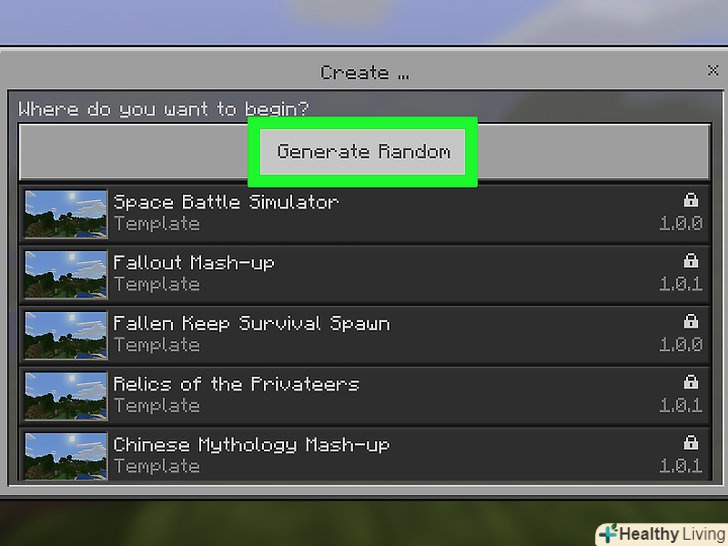 Виберіть ключ генерації села. натисніть на один з шаблонів» Village " (Село). Якщо в імені ключа немає слова Village (село), не вибирайте його.
