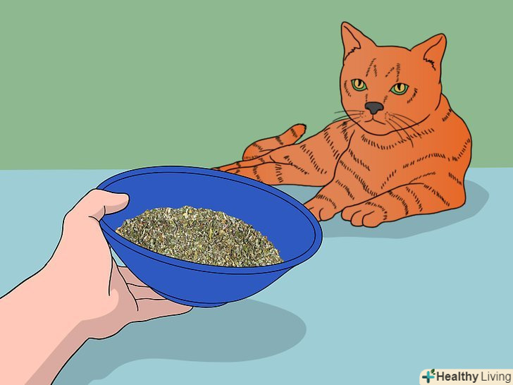 Запропонуйте кішці трохи сухої котячої м'яти. якщо кішка сильно схвильована, вам може вдатися заспокоїти її, висипавши на підлогу трохи котячої м'яти. Якщо ви не хочете потім забиратися (одні кішки просто їдять м'яту, в той час як інші валяються в ній), дайте кішці іграшку, наповнену котячої м'ятою.
