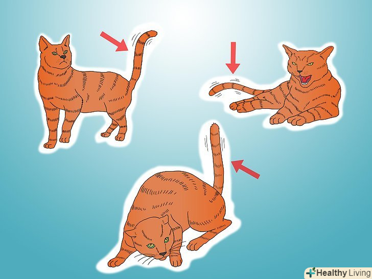 Слідкуйте за хвостом. хвіст-найвиразніша частина тіла кішки і хороший індикатор її настрою. На відміну від собак, кішки не виляють хвостом, коли задоволені. Ось на що слід звертати увагу: [8]- Якщо хвіст задраний, а кінчик злегка зігнутий, кішка задоволена, і можна без побоювань до неї підійти.