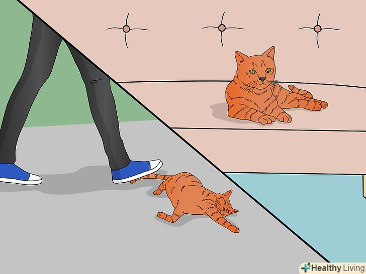 - До переляканої кішці слід підходити обережно. Переконайтеся, що переляканої кішці є куди втекти. Насправді їй навіть може знадобитися, щоб ви її заспокоїли і підбадьорили, особливо якщо причина в гучному раптовому звуці. У той же час, вона може захотіти побути на самоті, ось чому важливо залишити для кішки шлях до відступу. Перелякана і загнана в кут кішка може швидко стати агресивною!
