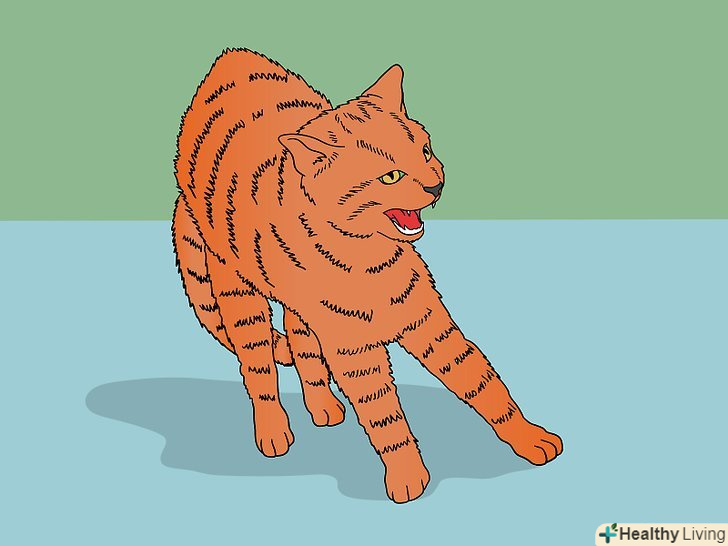 Погляньте на тіло і хутро кішки. якщо хутро розпушений, кішка, швидше за все, налякана або схвильована. Якщо ж хутро лежить як зазвичай, кішка більш розслаблена. Тим не менш, варто також подивитися на позу кішки, щоб визначити її настрій. [11]