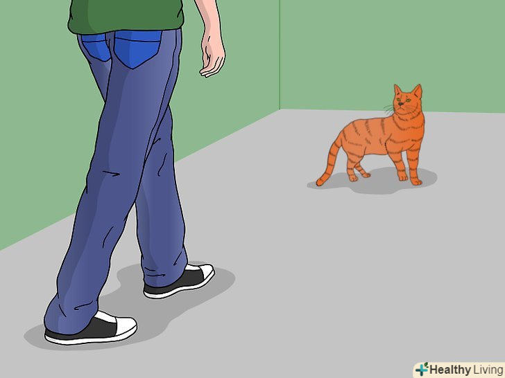 Наближайтеся до кота повільно. якщо кішка тікає від вас, вона все ще може бути зла на вас, засмучена або налякана. Не переслідуйте кішку, замість цього повторіть спробу через кілька хвилин. Так кішка буде впевнена, що ви не зробите нічого, що зашкодило б їй знову, і не станете їй докучати. Якщо у вас під рукою ласощі, це також допоможе заспокоїти кішку.