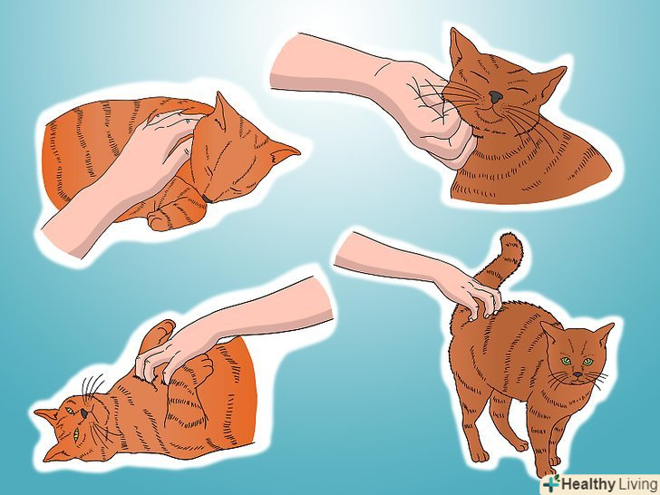 - Почухайте кішці голову, спину і грудну клітку. Тут потрібно пам'ятати, що не всі кішки люблять, коли їх чіпають в цих місцях. Уважно стежте за мовою тіла кішки, щоб не пропустити ознаки невдоволення.